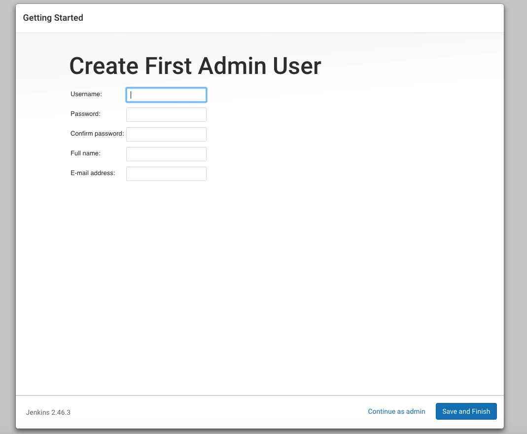 Next, you are invited to create the first admin user. This will replace the password that you used earlier: