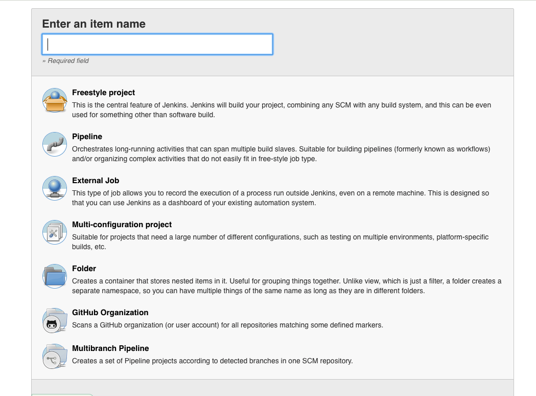 Jenkins then gives a bunch of pre configured job types: