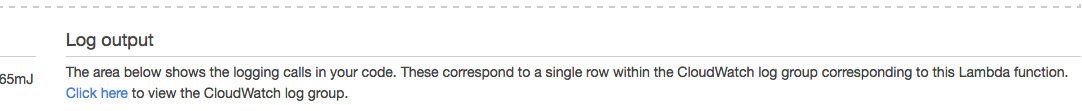 To see logs, click the Test button on the Lambda function. The screen will split into two. On the bottom half, scroll down to "Log output", and find where it says "Click here to view the CloudWatch log group.":
