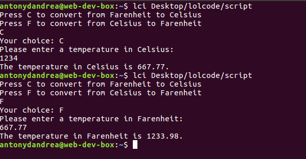 So I decided to try a more complex program: A program to convert between Celsius and Fahrenheit.