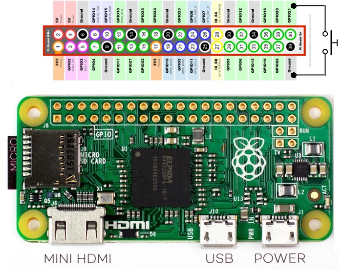 I tried to make a diagram to illustrate this but it took too long, so here is a an image of the pins on the Pi Zero and I will describe it to you (found here):